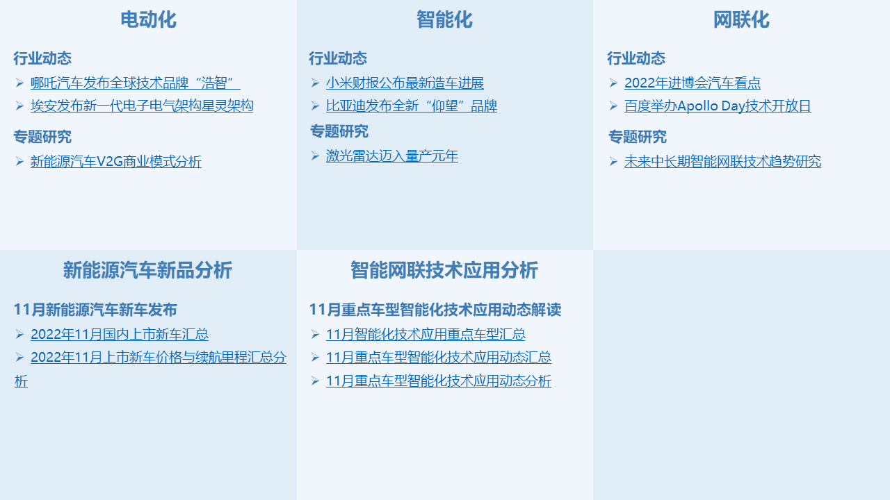 控安汽车研究院将定期发布《洞察:汽车产业新三化》月刊报告,紧扣汽车“新三化”,针对当月发生的重要行业新闻进行深度分析解读,并设有市场板块,主要分析月度车市销量、新能源汽车新车型上市汇总、重点上市新车智能网联技术搭载等情况,为汽车行业提供专业的资讯解读和咨询服务。